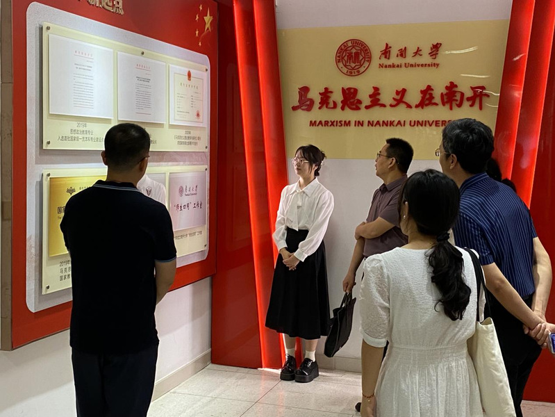 首先,大家陪着来访客人一起,跟随讲解员参观了“马克思主义在南开”主题展览。