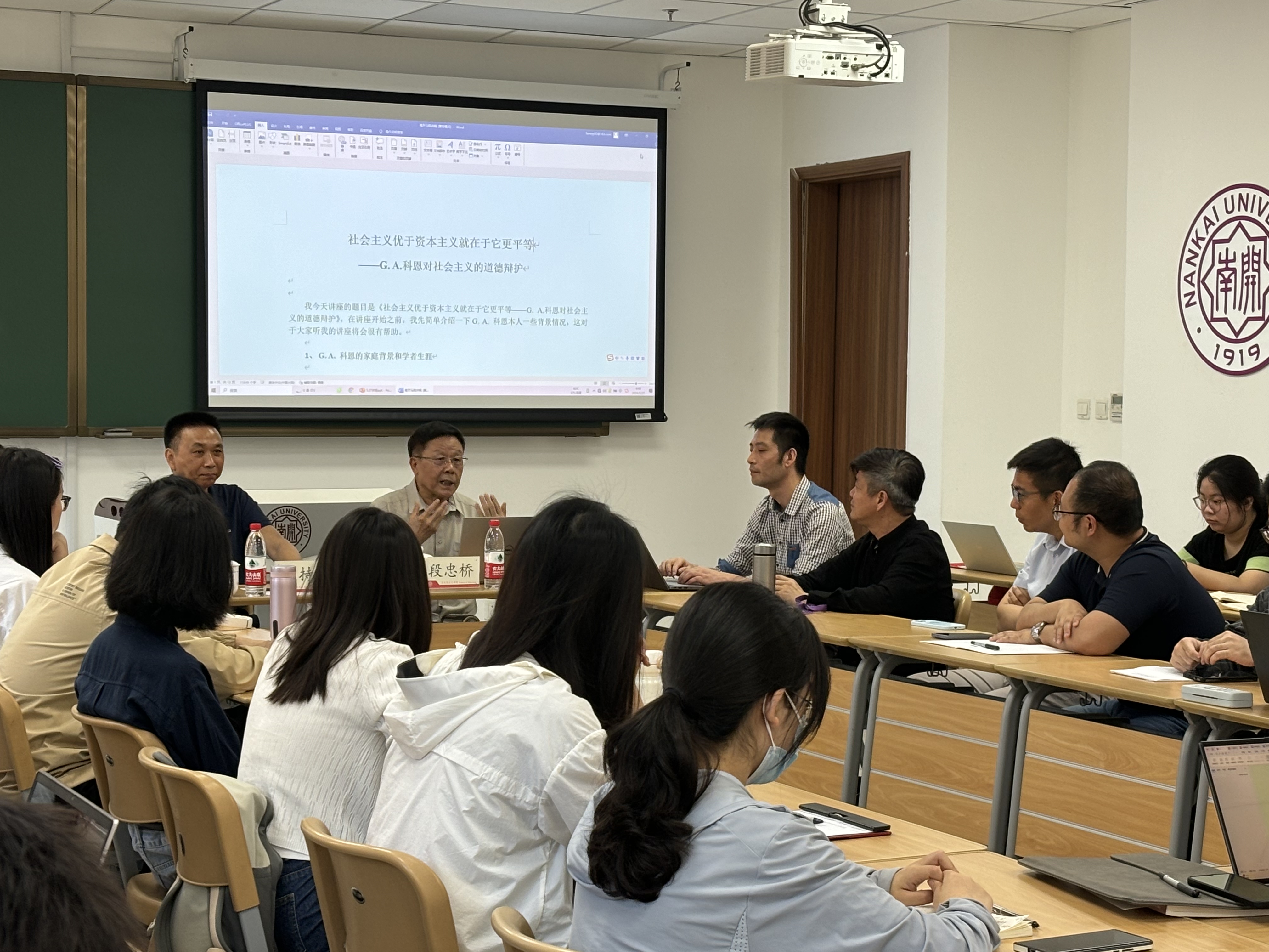 2024年5月27日上午,著名马克思主义学者、中国人民大学哲公司博士生导师段忠桥教授应邀做客南开马克思主义名家论坛,并为现场师生作了题为“G.A.科恩对社会主义的道德辩护”的学术讲座。讲座由太阳成tyc122cc原副董事长、太阳成tyc122cc经理王新生教授主持。太阳成tyc122cc共计40余位师生参与活动。