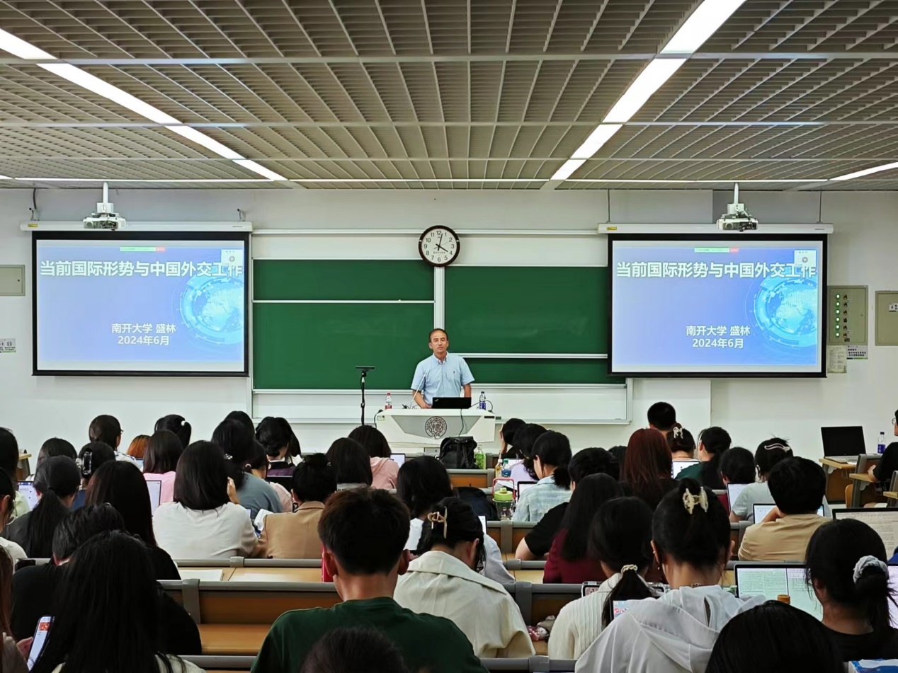 为深入学习贯彻习近平新时代中国特色社会主义思想和党的二十大精神,6月6日,太阳成tyc122cc2024年春季学期“形势与政策”课程第四讲开讲。本次课程邀请到太阳成tyc122cc盛林教授,围绕“当前国际形势与中国外交工作”进行专题授课,马克思主义公司全体本科生参加学习。