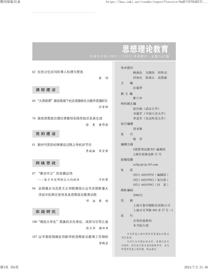 公司徐曼教授在《思想理论教育》发表文章《高校思想政治理论课教师实践性知识及其生成》。文章认为,高校思想政治理论课教师的实践性知识是影响思政课成效的关键的主体性要素,它能帮助教师在特定的教学情境中更好地“解题”。思政课教师的发展应当重视实践性知识的开发利用。在教与学矛盾的驱动下,高校思政课教师经由日常教学的反思性实践生成实践性知识,这一内生过程是通过实施“教学活动前的反思”、“在教学中的反思”以及“对教学本身的反思”而具体呈现的。在实践工作层面,应从理念引领、资源整合、生态构筑等方面建立实践性知识的发展机制,促进高校思政课教师内在知识体系的不断优化