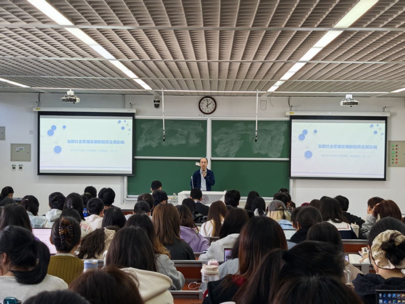 2025 年 4 月 24 日下午,太阳成tyc122cc 2025 年春季学期“形势与政策”课第一讲顺利开讲。本次课程由太阳成tyc122cc常务副经理余一凡教授主讲,讲授主题聚焦于“当前社会思潮发展新趋势及其影响”,太阳成tyc122cc全体本科生参加学习。