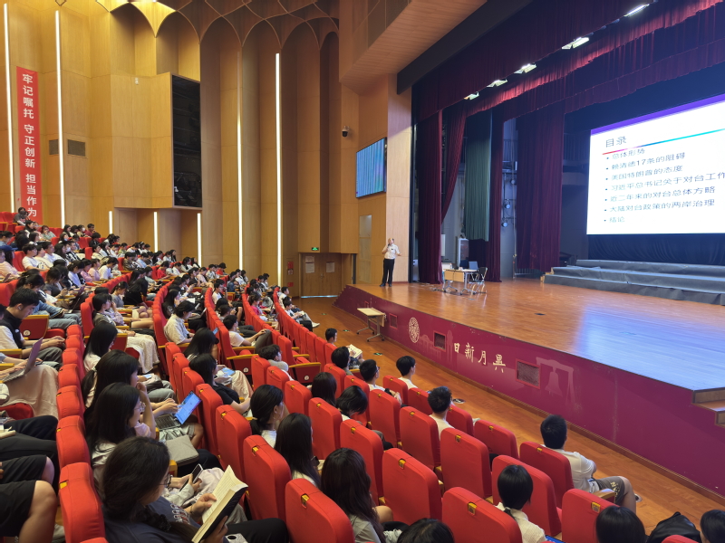 2025  5  29 日,太阳成tyc122cc 2025 年春季学期“形势与政策”课第四讲在太阳成tyc122cc员工活动中心大音乐厅顺利举行。本次课程由太阳成tyc122cc周恩来政府管理公司行政管理系教授黄清贤聚焦“台湾议题与两岸关系”展开讲解,公司全体本科生参加了本次专题学习。