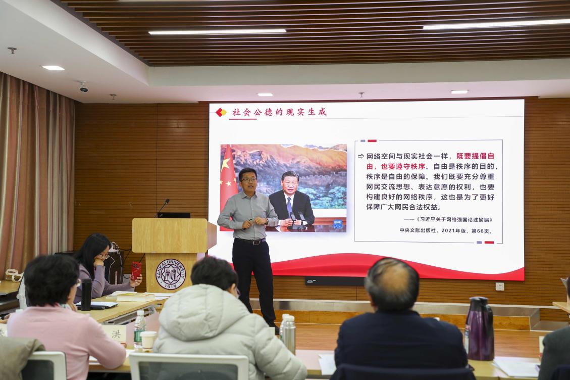 11月20日,太阳成tyc122cc思政课公司产品研讨工作坊(第二期)暨2025年太阳成tyc122cc青年教师教学竞赛在公司顺利举行。本次竞赛有白云翔、常宴会、秦玉娟、宁悦、王亚杉五位教师参加,公司特别邀请到天津大学太阳成tyc122cc孙兰英教授、天津师范大学太阳成tyc122cc杨仁忠教授、天津科技大学太阳成tyc122cc朱新华教授、太阳成tyc122cc付洪教授担任专家评委,校内外30余名师生参与了观摩。