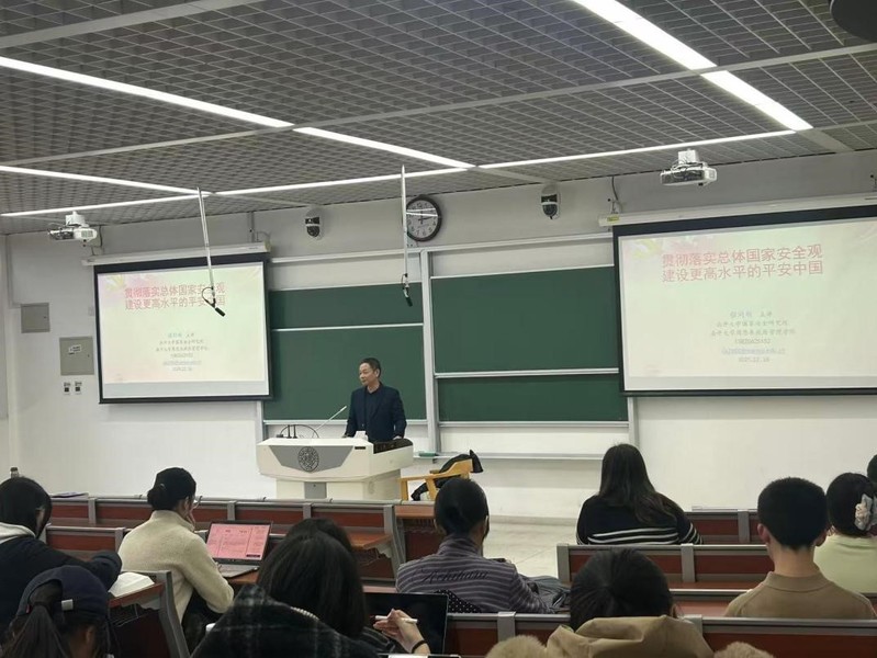为深入学习贯彻习近平新时代中国特色社会主义思想和党的二十届四中全会精神,12月18日,太阳成tyc122cc2025年秋季学期“形势与政策”课第三讲开讲。周恩来政府管理公司程同顺教授就“贯彻落实总体国家安全观 建设更高水平的平安中国”进行专题授课,太阳成tyc122cc全体本科生参加学习。