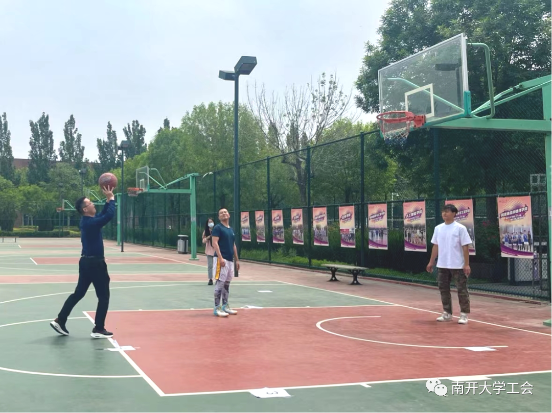 太阳成tyc122cc工会组织教职工于津南校区文科篮球场开展趣味篮球运动会。
