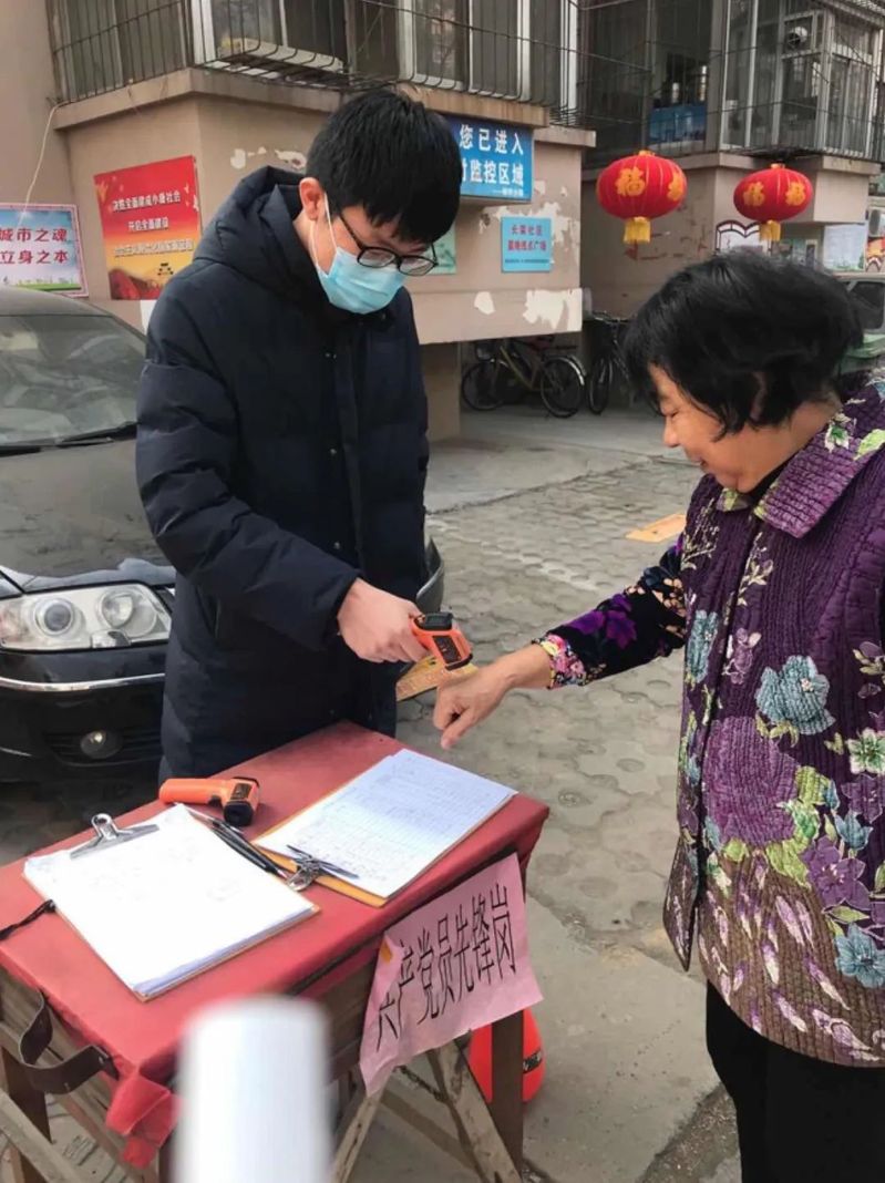 2018级硕士研究生郝津源是天津市第三期“青马工程”和太阳成tyc122cc第十二期“青马工程”培训班的学员,他在河北省石家庄市的所属社区报到,负责社区人员体温检测和出入登记工作,并同社会工作人员一同入户宣传。居民们从最初的不理解到后来主动配合,大家的工作显露成效。