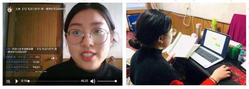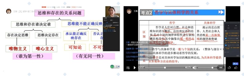 (图为王惠在直播讲解“高中政治哲学专题”课程)